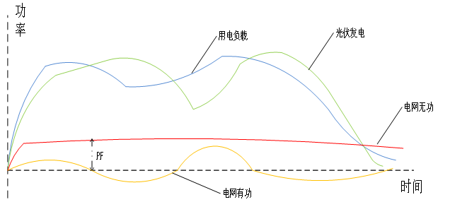 2.分布式光伏發電系統投入,光伏發電系統功率<用電功率時: